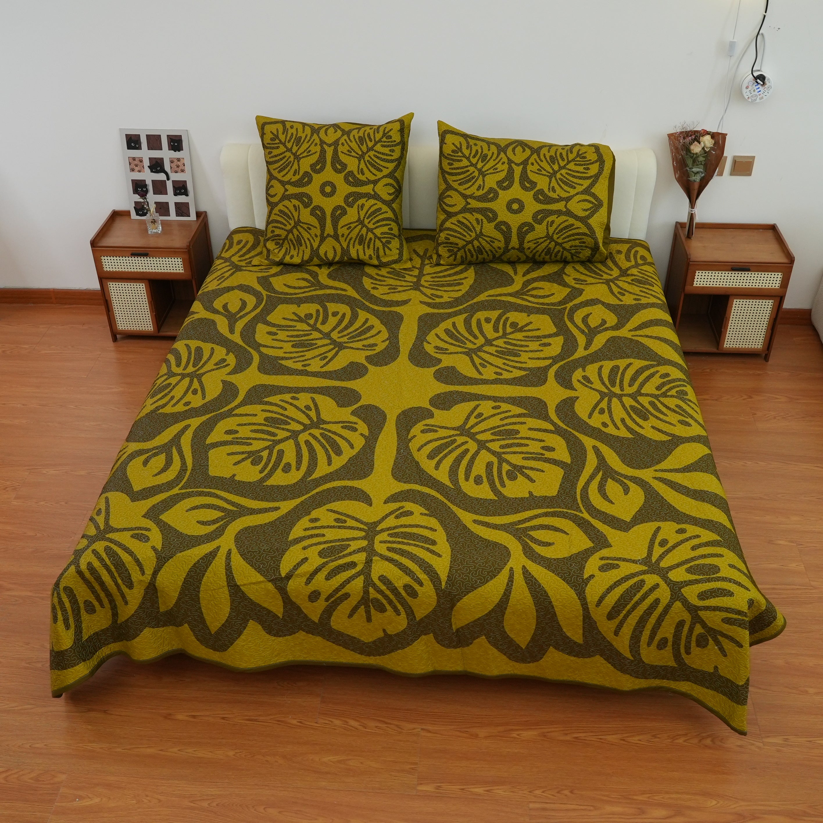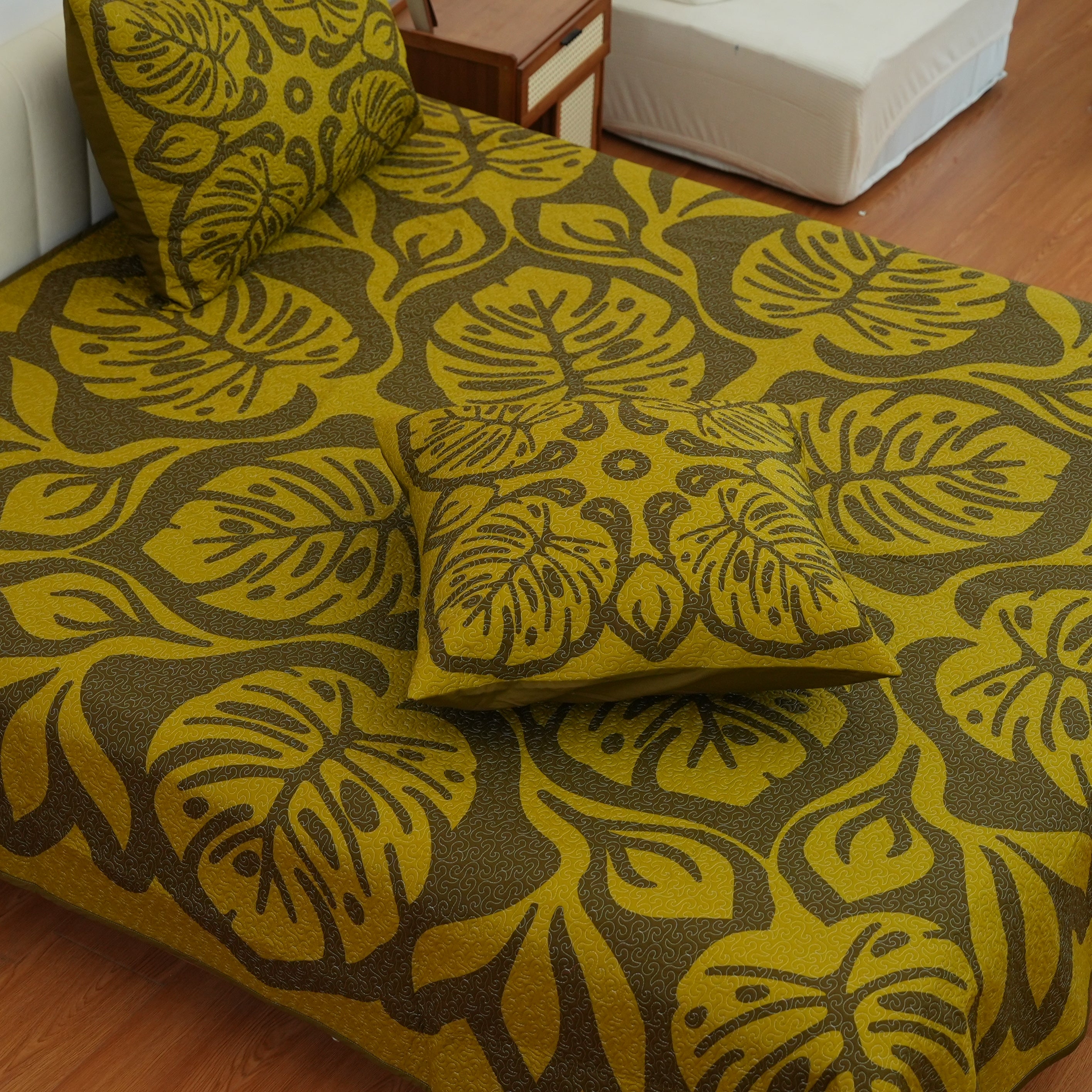 Couverture De Lit Matelassée - Monstera - Coffee